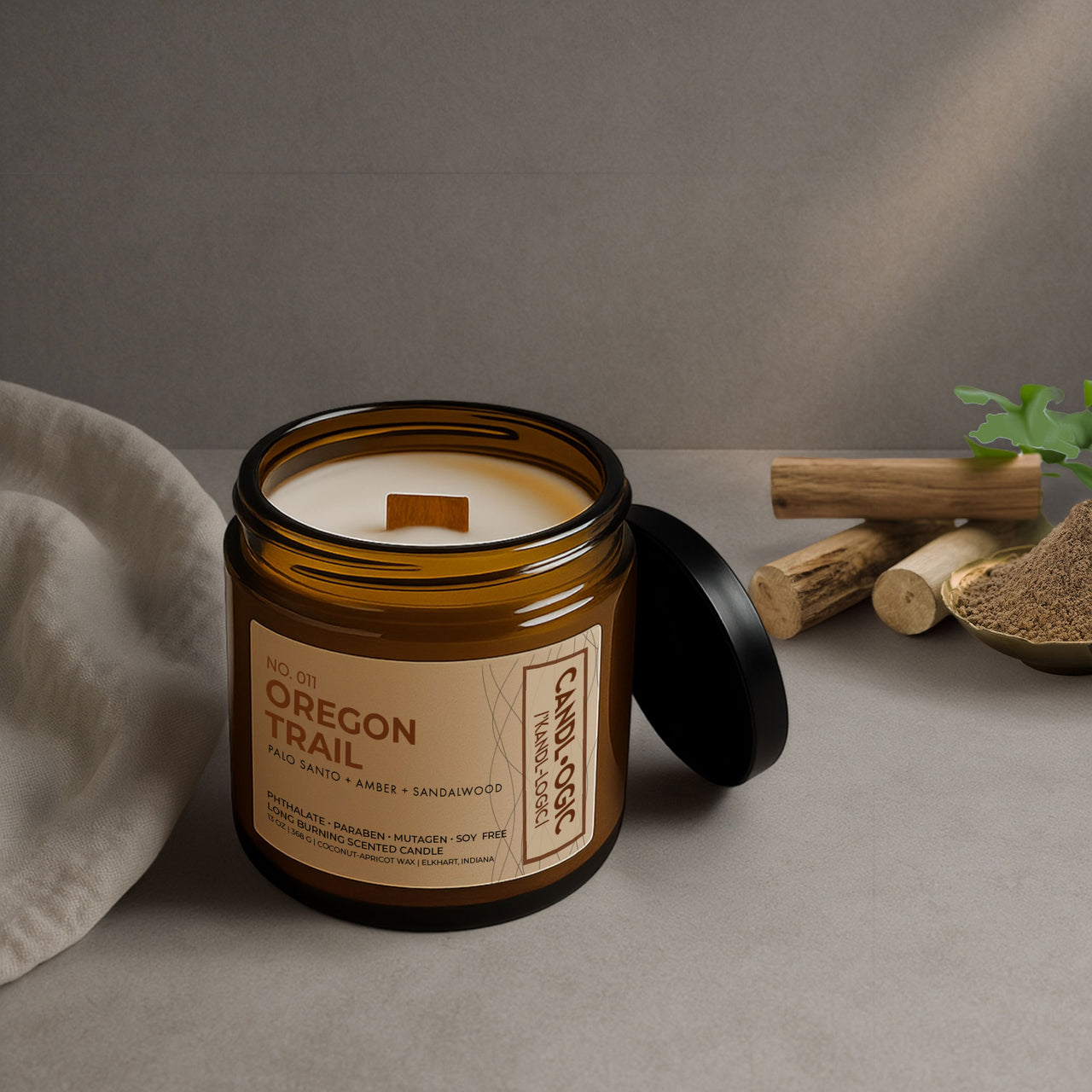 Crafted with our clean coconut-apricot wax and a crackling wood wick, this fragrance delivers the luxury burn experience Candl•ogic is known for—longer lasting, toxin-free, and always free of phthalates, parabens, mutagens, and soy. Oregon Trail is more than just a scent; it’s a calming presence that turns your space into a sanctuary of focus and relaxation.